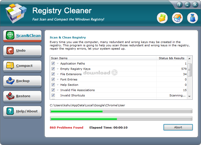Chaque fois que nous commençons système Windows, un grand nombre dentrées de registre sera créé automatiquement. Si nous ???? Dona t les nettoyer dans le temps, ils vont augmenter de jour plus en plus grande par jour et apportera des erreurs système ou le système se bloque un jour. Ces entrées de registre ne peuvent pas se nettoyer. Si vous avez trouvé votre vitesse de réponse du système est lent obtenir que la première fois que vous utilisez lordinateur, cela signifiait votre base de registre a été surchargé et ont besoin dun nettoyage complet.Si vous êtes tourmenté par les erreurs de système, les accidents et lente vitesse de réponse, vous pouvez obtenir la solution finale de Registry Cleaner AthTek. La seule chose que vous devez faire est de scanner et nettoyer le registre en quelques clics, et puis tous les problèmes du système sera retiré immédiatement. Il fonctionne comme un outil complet de maintenance du système et peut faire plus sur les nettoyeurs de registre gratuit peut faire.