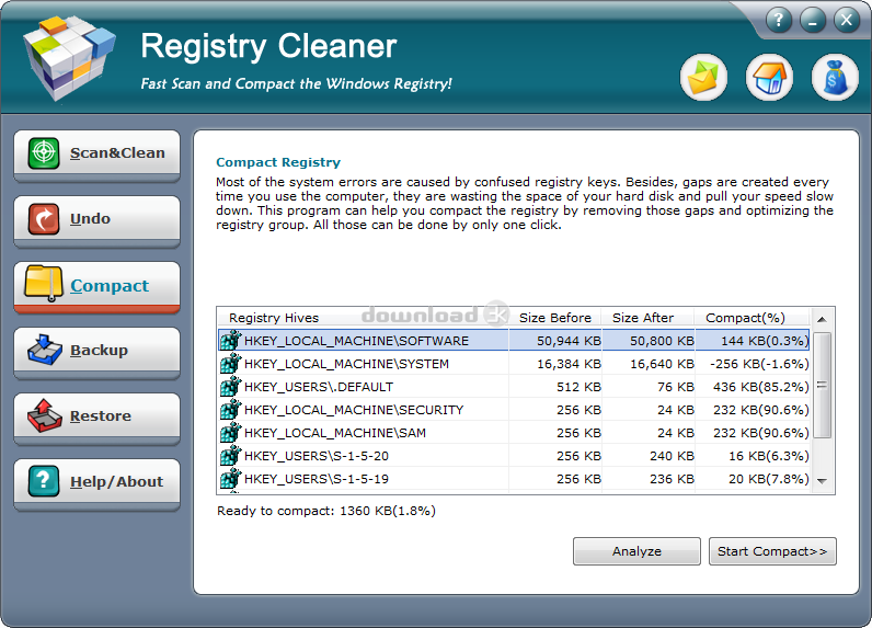 Jusquà présent, AthTek Reigstry Cleaner est le seul outil de nettoyage de registre qui peut prendre des effets réels sur Windows 8. Si vous avez déjà comparé ce programme avec dautres nettoyeurs de registre en particulier celles qui sont libres, vous savez probablement ce que sont les avantages de AthTek Reigstry Cleaner. Il peut facilement trouver davantage plus les erreurs de registre et rendre le registre nettoyé à niveau beaucoup plus profond. En un mot, AthTek Reigstry Cleaner est le tueur derreurs de registre et le plantage du système. Il est le nettoyeur de registre exact pour Windows.