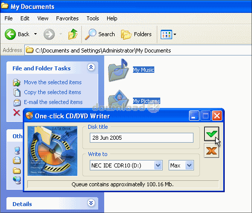 Ecrire tous les fichiers et dossiers sur CD et DVD simple clic droit sur eux. Avec un clic Graveur CD / DVD, vous pouvez graver vos photos, films, documents et autres fichiers sur CD ou DVD, créer un CD audio directement à partir de fichiers WAV, MP3, WMA, OGG, APE, FLAC, graver des images disques ISO et effacer des disques en un seul clic. One-click CD / DVD Writer est extrêmement simple, tout ce que vous devez faire est un clic droit sur les objets de votre ordinateur que vous souhaitez copier sur CD ou DVD et de choisir "Write" option. Vous pouvez les graver instantanément, ou ajouter à la file dattente pour une gravure ultérieure. Dire "au revoir" à options compliquées, un seul clic CD / DVD Writer copie de CD et DVD en un seul clic. Il supporte tous les standards connus CDR / RW / DVD, lécriture multi-session et plusieurs enregistreurs.Exigences: CD and/or DVD recorder