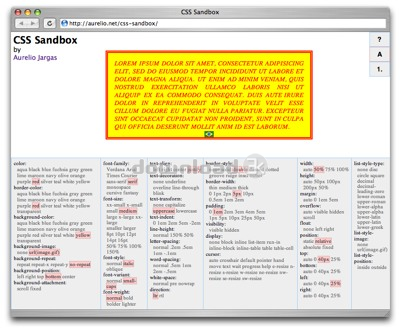 CSS Sandbox est une page interactive pour jouer avec les propriétés CSS sur la volée. Il suffit de cliquer et voir leffet instantanément. Cest rapide et drôle!Exigences: Browser with Javascript