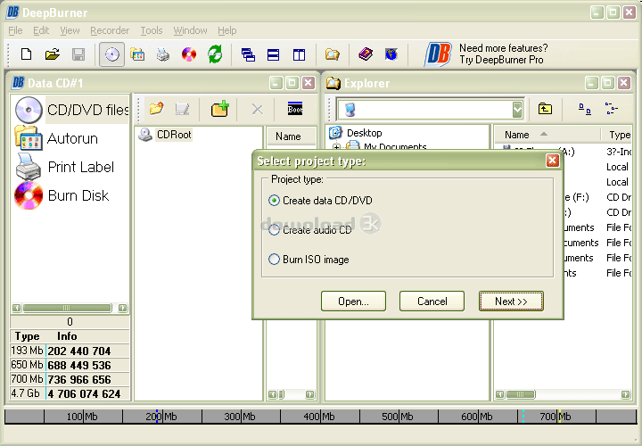DeepBurner Free Portable est libre, avancé, et extrêmement puissant de CD et la gravure de DVD emballage. Il enlève la dispute de CD, DVD, prise et Autoruns. DeepBurner Free Portable fonctionne directement à partir de vos supports amovibles, quil sagisse dun lecteur flash USB, carte Compact Flash, ou même une disquette bon vieux temps. Graver des données, copier nimporte quel disque, faire des sauvegardes, création de CD ISO avec cette très facile à manipuler le logiciel!Exigences: P 70