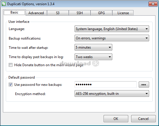 Duplicati utilise le cryptage AES-256 (ou GNU Privacy Guard) pour sécuriser toutes les données avant leur téléchargement.
