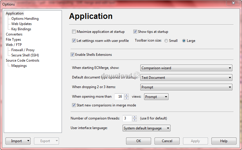 ECMerge compare et fusionne des fichiers, images, dossiers et sites FTP/S et SFTP à 2 ou 3 sources. Il est conçu pour travailler avec plusieurs révisions de fichiers texte ou avoir des arborescences de dossiers à synchroniser. Deux fichiers ou répertoires peuvent être comparés à un ancêtre commun.