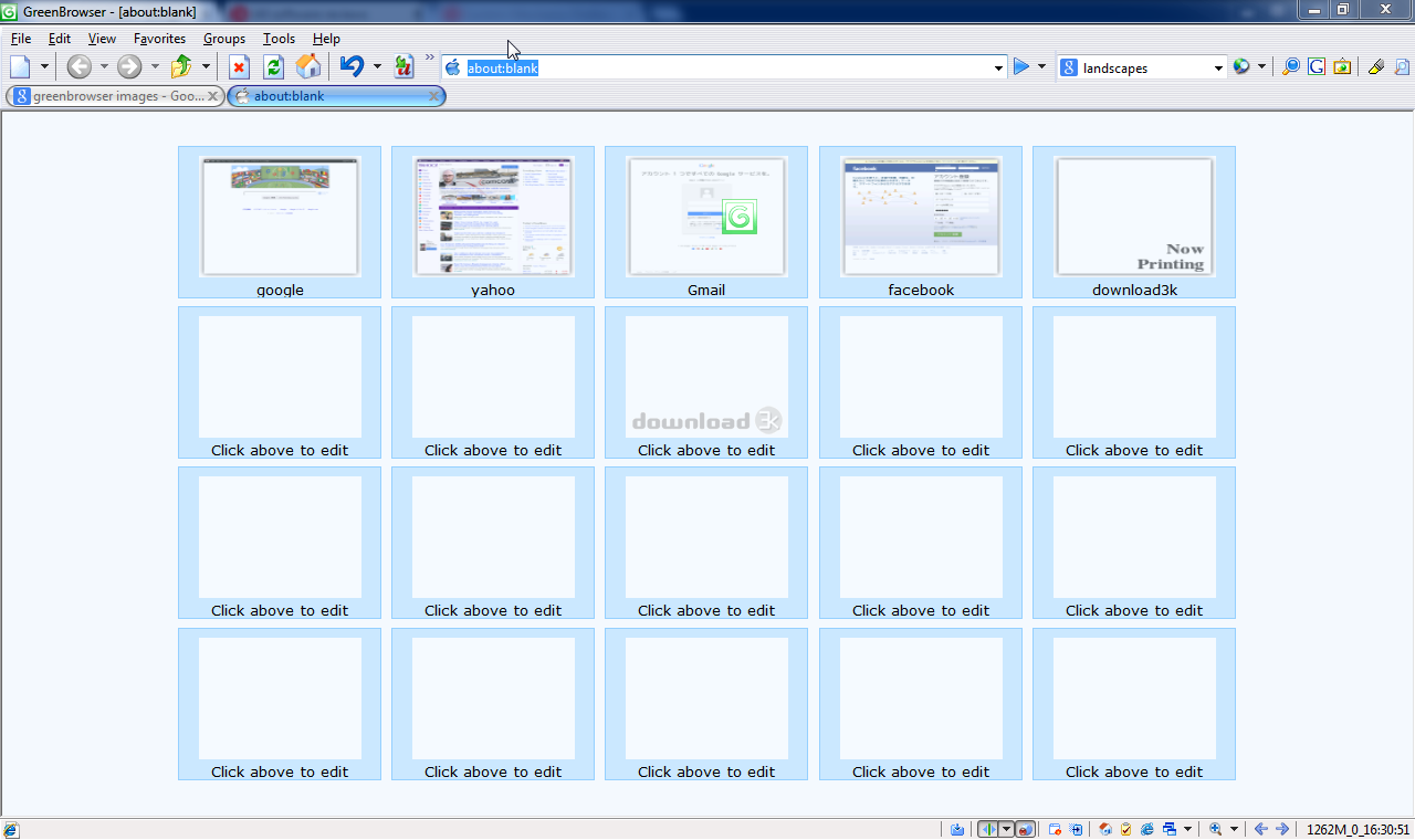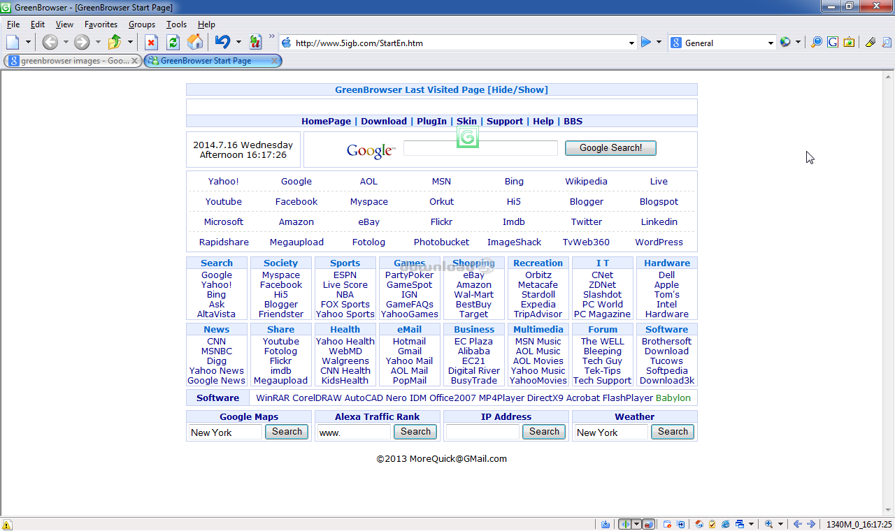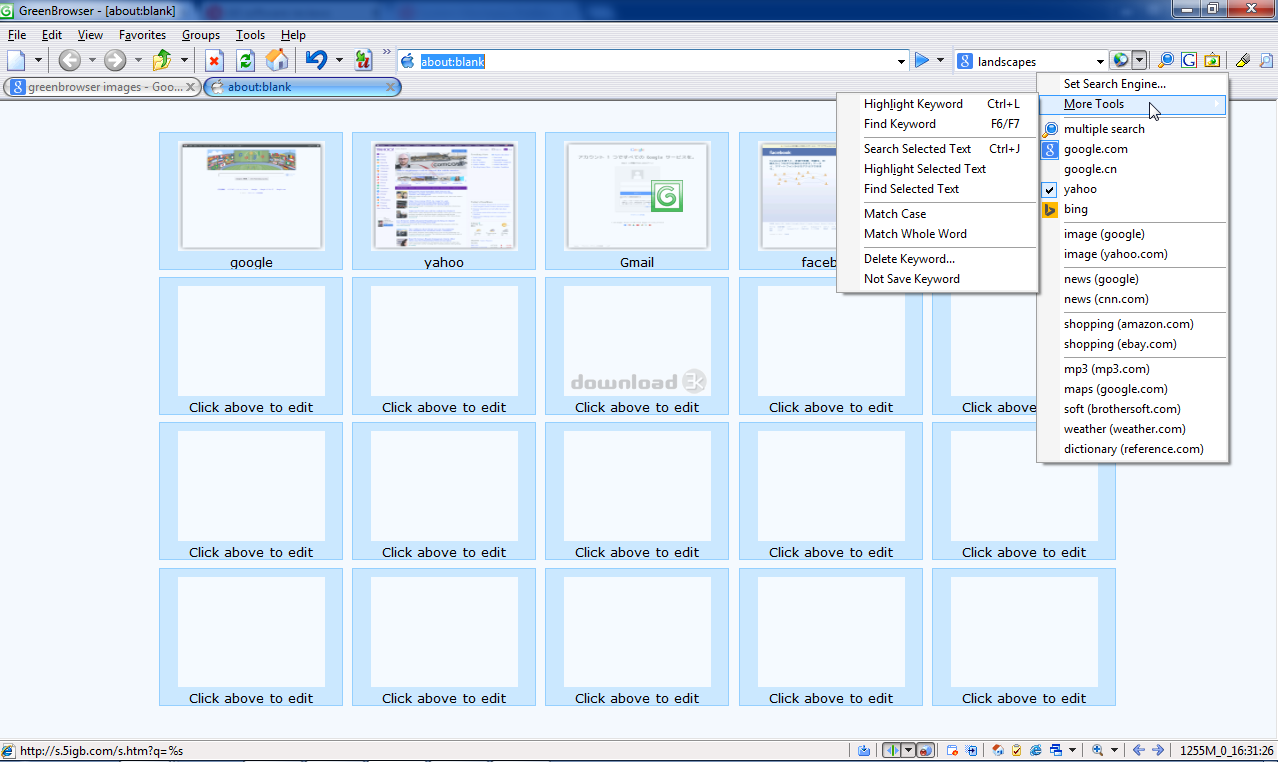 GreenBrowser est un navigateur plusieurs fenêtres basé sur IE avec dautres fonctionnalités puissantes. Telles que: - des touches rapides, Collector, mouvement de la souris, déplacez la souris, Filtre des annonces, moteur de recherche, page Retour en couleur, peau Barre doutils, de sollicitation de procurations, la barre donglets, le défilement automatique, Auto Save, Auto Remplissez le formulaire, mode de démarrage, Auto Hide Bar, Souris drag and drop ... Vous pouvez rechercher quelque chose directement dans le navigateur: nouvelles, mp3, matériel, logiciel, actions et ainsi de suite. Vous pouvez également ajouter votre moteur de recherche list.In moteur barre de recherche, vous pouvez rechercher par mot-clé moteur de recherche, sélectionnez mot-clé, trouver mot-clé dans la page. Barre de recherche peut sauver votre mot clé dans une liste. Vous pouvez ajouter certains utilisent souvent des programmes dans la barre doutils de lien externe par "Set barre doutils externes ...". Après cela, vous pouvez configurer le programme "Auto Start avec GreenBrowser" ou "Auto Close avec GreenBrowser".Quoi de neuf dans cette version: add: close icon for all tabs. fix: blur bug when mouse drag under win8. fix: function bug when mouse drag link and image under win8. fix: input method bug of address bar and search bar under win8. fix: bug of new version check under win8. improve: add open form button in set form data dialog. improve: menu of mouse drag image.