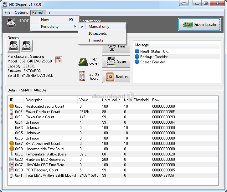 HDDExpert vous donner une vision de cristal clair sur votre disque dur et la santé et la performance traduire SMART attribuer en indication lisible. Recommande entretien (les fans de mise à niveau, lachat de rechange, sauvegardes, ...) en fonction de la quantité de défaillances détectées sur vos disques durs.Principales caractéristiques: