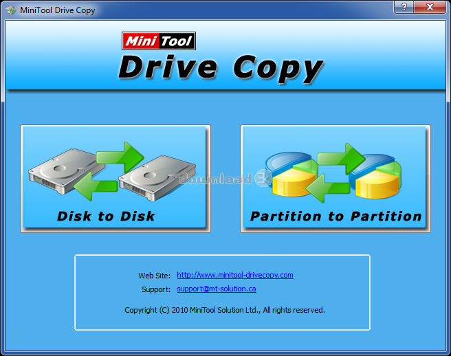 Logiciel de copie de disque libre MiniTool Drive Copy est un logiciel de copie de disque gratuit et un outil de clonage de disque. MiniTool Drive Copy peut copier et cloner des partitions FAT12, FAT16, FAT32, VFAT, NTFS et NTFS5. Quel que soit le disque, IDE, SATA, SCSI ou un lecteur amovible. Il peut copier le disque facilement et rapidement. Après une sauvegarde rapide du disque ou des partitions, vos données seront protégées même en cas de panne du système. Et aussi, après la copie, votre ordinateur pourrait démarrer directement à partir du nouveau disque. MiniTool Drive Copy est compatible avec Windows 2000 Professionnel / XP / Vista / Windows 7 (32 bits et 64 bits). C'est un outil indispensable et gratuit pour l'utilisateur à domicile.Info Antivirus