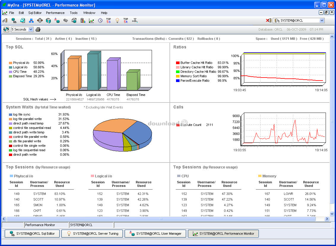 MyOra est un outil de SQL libre pour les développeurs et administrateurs de bases de données Oracle. Cet outil est simple, rapide et facile à utiliser, ne nécessite aucune installation, aucun client Oracle et pas de connexion Internet. Il suffit de télécharger, décompresser et commencer à lutiliser avec un clic de souris, les requêtes SQL exécutées et contrôler la performance de base de données en temps réel. MDI (Multi Document Interface) du cadre de MyOraâ ???? gère plusieurs sous-fenêtres ouvertes en même temps. Permet plusieurs connexions à la même base de données ou autre base de données. Les utilisateurs peuvent ouvrir un nombre quelconque de moniteurs de performance, SQL éditeurs, schéma explorateurs, les gestionnaires de session, etc, et voir à la verticale ou à lhorizontale. Suivi de Performance Temps réel à laide de graphiques, de diagrammes à barres et graphiques circulaires. Top 5 des requêtes SQL (détails SQL et expliquer Plan) en utilisant interactifs graphiques à barres 3-D. Top 5 des Ressources (Sessions Statistiques) à laide de graphiques à barres interactifs 3-D. Activité DB en temps réel en utilisant Six graphiques interactifs. Tablespace libre / camemberts. Session Manager pour contrôler les sessions. Éditeurs SQL avec fonction auto complète pour les noms de table et noms de colonnes et de nombreuses autres fonctionnalités. MyOra surveillera la performance de base de données Oracle en temps réel pour identifier les problèmes de performance à mesure quils surviennent.Info Antivirus