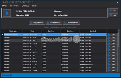 L'enregistreur Parental Skype est un outil unique pour la surveillance Steype Stealth. Une fois qu'il est installé, il démarre automatiquement lors du démarrage de Windows, ne montre aucune icône dans la barre des tâches ou la barre d'état système et surveille secrètement les activités de Skype. Tout type de conversations de Skype sera enregistré dans des fichiers mp3 compacts avec des détails d'appel: heure d'appel, nom de contact, type d'appel Skype.Caractéristiques principales: