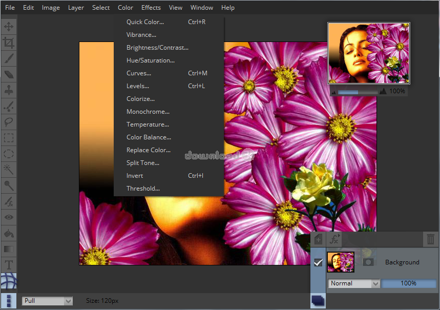 Pixeluvo est une application de manipulation de retouche dimage et photo conçu pour être à la fois puissant et facile à utiliser.Il prend en charge de nombreuses fonctionnalités avancées telles que lédition non destructive via les calques de réglage, de puissants outils de correction colorimétrique, réalistes outils de dessin sensibles à la pression et de nombreux filtres damélioration dimage. Il peut gérer toutes sortes dexigences de retouche dimage, de culture et de couleur simples ajustements à complexe montage photo et de la peinture numérique.