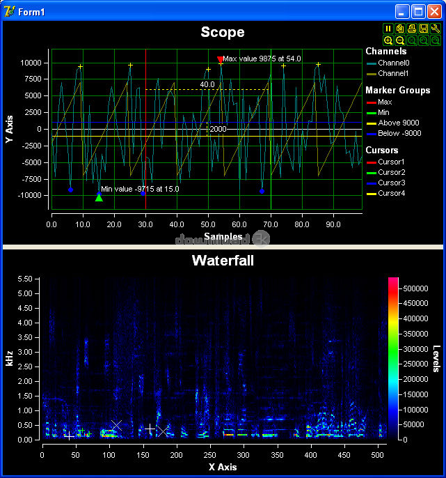 - Cascade de composants - un seul canal de données de cascade de traçage composant. Particulièrement adapté pour les résultats FFT, et du spectre.