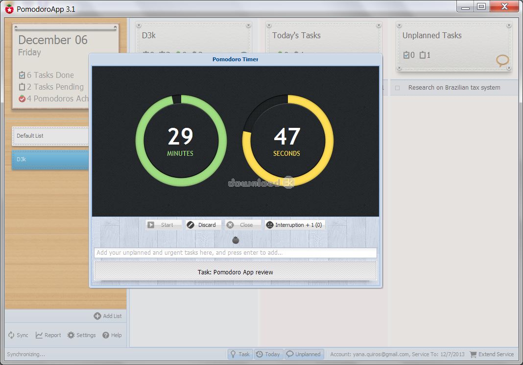 Recueillez des données brutes sur les efforts déployés et d’autres mesures d’intérêt. Suivre tous les pomodoros terminés, les pomodoros mis au rebut, se connecter de manière imprévue, l’urgence de la boîte de réception.