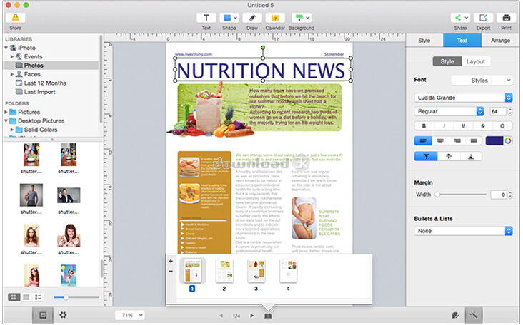 Publisher Plus est une puissante application de publication assistée par ordinateur et de présentation de page à usage domestique et professionnel.Publisher Plus vous permet de concevoir et de créer rapidement tout type de tirages de luxe et de qualité professionnelle dont vous pourriez avoir besoin. Il ne peut pas être plus facile de créer des dépliants, des brochures, des cartes de visite, des lettres d'information, des publicités, des rapports, des calendriers, des affiches, des livrets, etc. qu'avec cette application.