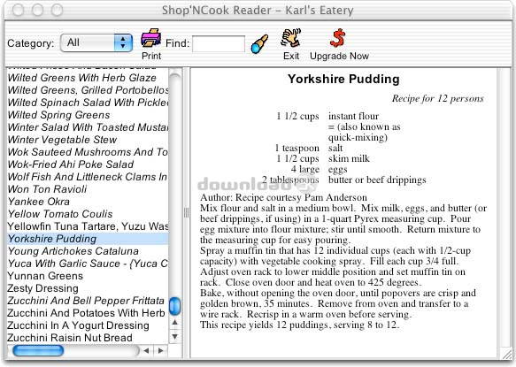 Lecteur Cookbook ShopNCook est un logiciel gratuit pour lire les livres de cuisine créés avec ma liste de magasinage ShopNCook & Manager Recette. Lecteur Cookbook ShopNCook, il est facile de partager vos livres de cuisine avec des amis et la famille ou de les distribuer sur Internet. Avec ShopNCook Reader, vous pouvez consulter et de chercher des recettes des livres de cuisine et fiches de recettes imprimées. Une collection de plus en plus de livres de cuisine gratuits totalisant des milliers de recettes sont disponibles pour téléchargement.Exigences: Java 1.4