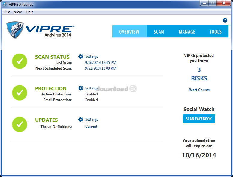 Download3K a téléchargé et testé VIPRE Antivirus le 16 Jul 2021 sur uns des meilleurs moteurs antivirus actuellement disponibles. Vous trouverez ci-dessous les résultats de l’analyse: