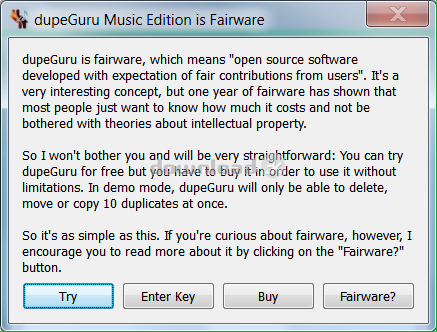 dupeGuru Music Edition (ME pour faire court) est un outil pour trouver des chansons en double dans votre collection de musique. Il peut analyser les noms de fichiers, les balises ou le contenu. dupeGuru ME est le grand frère de dupeGuru. Il fait tout dupeGuru, mais il a plus dinformation colonnes (tels que le bitrate, la durée, les étiquettes, etc.) Et plus de types de balayage (de nom de fichier avec des champs, étiquettes et contenu audio). dupeGuru ME fonctionne sous Windows 2000/XP et Mac OS X 10.4 +.dupeGuru ME est efficace. Retrouvez vos fichiers en double en quelques minutes, grâce à son algorithme de correspondance floue rapide. dupeGuru ME trouve non seulement les noms de fichiers et les tags qui sont les mêmes, mais il trouve aussi dautres semblables. Par exemple, ME dupeGuru, avec les bons réglages, peut déterminer que "The White Stripes - Seven Nation Army" et "White Stripe - Sept armées de nations" sont des doublons.