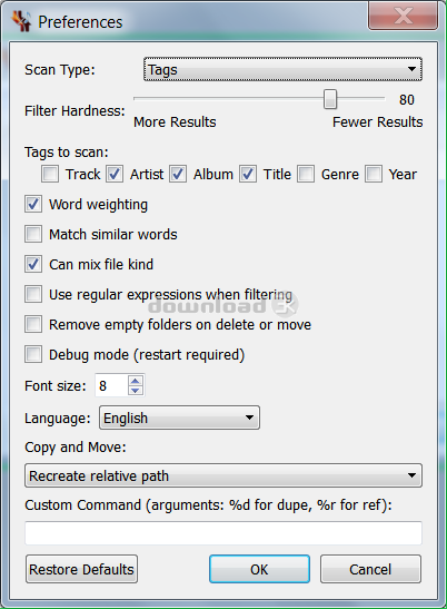 dupeGuru ME est personnalisable. Vous pouvez modifier son moteur de correspondance de trouver exactement le genre de copies que vous voulez trouver.