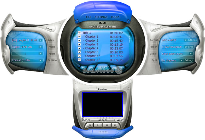 iSofter DVD to Zune Converter est extrêmement facile à utiliser. Il vous aide à extraire un film DVD en Zune MP4 et à convertir un DVD en vidéo Zune MPEG-4 et WMV avec une excellente qualité d'image et de son.Le logiciel de conversion de DVD en convertisseur Zune prend également en charge l'extraction et la conversion de DVD au format Zune MP3, WMA, AAC et à l'importation dans le lecteur Zune.